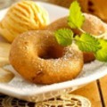 0,5 л молока 1 яйцо 1 пак. ванильного пудинга 2 яблока сок 1 лимона 1 ст.л. растительного масла 1 ч.л. корицы 4 ст.л. сахара 75 г муки 75 мл белого вина соль Сделать соус: молоко соединить с пудингом и 2 ст.л. сахара, тщательно перемешать и довести до кипения. Проварить 1-2 минуты и снять с огня, остудить. Сделать кляр: яйцо, вино и муку взбить с помощью миксера, добавить щепотку соли. Яблоки очистить, нарезать кружочками, удалить середину и сбрызнуть лимонным соком. В сковороде разогреть масло и обжарить яблочные кольца с двух сторон, предварительно обмакнув в тесто. Готовые кольца посыпать сахаром и корицей, подавать с ванильно-молочным соусом.