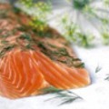 1/2 тушки лосося (филе) 1 ст.л. белого перца горошком 30 г соли 75 г сахара 150-200 г свежего укропа Рыбное филе промыть и обсушить, разрезать на 2 равные части. Белый перец тщательно измельчить, соединить с солью и сахаром. Приготовленной приправой тщательно натереть рыбное филе. Зелень укропа промыть, обсушите и очень мелко нарезать, затем натереть им куски лосося. 2 части рыбы соединить вместе кожей наружу и обернуть фольгой. Рыбу в фольге положить под гнёт в холодное место на двое суток. Утром и вечером желательно переворачивать рыбу. Перед подачей рыбку нарезать тонкими кусочками.