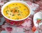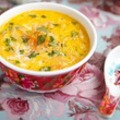 1 морковь с листьями 2 ст.л. риса 1 луковица 1 патиссон 1,5 л воды 0,5 л молока соль Морковь и патиссоны очистить, натереть на крупной терке. Листья моркови измельчить. Лук очистить и нарезать полукольцами. В кипящую воду всыпать рис, варить 5-7 минут, затем добавить овощи и листья моркови и варить еще 5 минут. Осторожно влить молоко, довести до кипения. Подавать к столу.