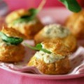 Тесто: 200 г масла 200 г муки 1 стак. воды Крем: 250 г сливочного масла 250 г сыра "Рокфор" 3/4 стак. сливок Сделать крем: тщательно взбить сливки, отдельно смешать размягченное сливочное масло и сыр. В сырную массу постепенно добавлять взбитые сливки, тщательно перемешать до получения кремовой массы. Приготовить слоеное тесто, раскатать его 7 раз в пласт толщиной 1/2 см, вырезать кружки диаметром в 3-4 см. Полученные кружки уложить на промасленный пергаментный лист на противне, поставить в хорошо прогретую духовку. Когда тесто сильно поднимется и коржики начнут румяниться, необходимо убавить жар и допечь до готовности. Коржики снять с листа, остудить. Каждый коржик разделить по слоям пополам, смазать кремом и соединить обе половинки. Сверху украсить кремом из кондитерского шприца.