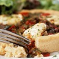 Тесто: 200 г сливочного масла 300 г муки 3 желтка соль Начинка: 200 г шпрот 1 ст.л. томатной пасты 3 яйца соль перец 100 г сыра Сделать начинку: шпроты выложить в миску и вместе с размягченным маслом растереть в однородную массу. Далее добавить 100 г тертого сыра, тщательно перемешать. Отдельно растереть желтки с томатной пастой, поперчить и посолить по вкусу, добавить 1 ст.л. муки, тщательно перемешать, затем осторожно добавить взбитые в крутую пену белки, перемешать. Масло порубить с мукой, хорошо перемешать, посолить, добавить желтки и замесить тесто. Если получится крутое тесто, в него можно добавить 1-2 ст.л. сметаны. Полученное тесто поставить на 10-15 минут в холодильник, затем вынуть и раскатать в пласт толщиной в 0,5 см. Раскатанное тесто укладывать в формочки для тарталеток, смазанные маслом и присыпанные мукой. Каждый кружок вдавить в формочку так, чтобы тесто покрывало дно и бока до краев формочки. Подготовленные тарталетки поставить в духовку на 10 минут при температуре 180С. Затем тарталетки вынуть из духовки, начинить шпротным фаршем на 1/3, сверху положить яично-томатную заливку на 3/4, снова поставить в духовку. Запекать при температуре 150С до тех пор, пока поверхность начинки не станет румяной.