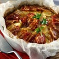 200 г бекона 400 г фарша из свинины 400 г куриной печени 1 луковица 4-5 зуб. чеснока 2 яйца растительное масло соль перец Куриную печень измельчить. Яйца слегка взбить. Лук и чеснок очистить, измельчить, обжарить в масле в течение 7-10 минут. Смешать фарш, куриную печень, обжаренные лук и чеснок, яйца. Бекон нарезать ломтиками. В глубокую форму для запекания выложить ломтики бекона, чтобы закрыть дно и бортики. Подготовленный фарш выложить поверх бекона, сверху накрыть ломтиками бекона. Форму накрыть фольгой, запекать в духовке на водяной бане при температуре 180С в течение 1,5 часов. Слить образовавшийся жир, остудить.