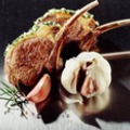 500 г корейки ягненка 150 г натурального йогурта мята 6-8 зуб. чеснока масло оливковое 1 лимон розмарин Баранину очистить от пленок, проколоть в нескольких местах. Нашпиговать мясо веточками розмарином и очищенными дольками чеснока. Залить оливковым маслом и мариновать в течение 7-10 минут. Подготовленное мясо слегка обжарить на гриле. Затем переложить мясо на сковороду и довести до готовности в духовке при температуре 200-220С. Перед подачей мясо полить соусом, предварительно удалив чеснок и розмарин. Сделать соус: в йогурт нарезать мяты, выдавить 1 зуб. чеснока, добавить сок лимона, посолить и перемешать по вкусу.