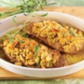500 г свинины 150г соленого крекера 100 г сыра 1 помидор 1 зуб. чеснока 2 ст.л. майонеза (сметаны) зелень соль Крекеры измельчить с помощью блендера. Сыр натереть на мелкой терке, смешать с крекером. Зелень промыть и измельчить, чеснок очистить и пропустить через пресс, добавить вместе с майонезом к крекерно-сырной массе. Посолить по вкусу и тщательно перемешать. Помидор промыть, нарезать кружочками. Мясо разрезать на порционные кусочки, отбить. Подготовленное мясо положить в смазанную огнеупорную форму, сверху положить ломтик помидора, далее - крекерную массу. Запекать в духовке в течение 45 минут при температуре 200-220С.