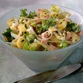 150 г ветчины 150 г свежей капусты 1 свежий огурец 1-2 помидора 1 яблоко 1-2 картофелины зелень соль майонез Картофель отварить, остудить, очистить, нарезать небольшими кубиками. Яблоко очистить от кожуры и сердцевины. Ветчину, помидоры и огурец нарезать кубиками. Капусту нашинковать соломкой посолить и отжать руками. Подготовленные ингредиенты смешать, добавить измельченную зелень, посолить по вкусу, заправить майонезом (или сметаной).