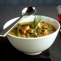 300 г зеленой стручковой фасоли 3 картофелины 2 ст.л. томатной пасты 1 луковица масло растительное 1 зуб. чеснока 1 ст.л. порошка карри соль сок лимона Лук и чеснок очистить, мелко нарезать, слегка обжарить на масле, затем добавить порошок карри и тушить в течение 5 минут. на слабом огне. Далее добавить томатную пасту, а также очищенные и измельченные стручки зеленой фасоли, тушить 15 минут. Картофель очистить, очень мелко нарезать, добавить к овощной смеси. Посолить и добавить лимонный сок по вкусу. Также можно добавить немного воды. Тушить до готовности.