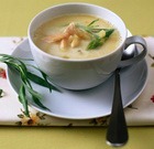 300 г отварного филе лосося 1 л куриного бульона 1 зуб. чеснока 1 ч.л. свежего имбиря 1 стеб. лука-порея К бульону добавить чеснок, пропущенный через пресс, тертый имбирь, довести до кипения. Снять с огня, добавить нарезанный ломтиками лосось и нарезанный лук-порей, накрыть крышкой и дать настояться в течение 2-3 минут.