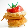 5 яблок 2 яйца 100 мл молока растительное масло 200 г муки 1 ч.л. ванильного сахара соль 100 г шоколада орехи В миску влить молоко, добавить яйца, ванильный сахар, щепотку соли, 50 мл растительного масла, 150 г муки, тщательно перемешать. Яблоки очистить от кожуры и сердцевины, нарезать толстыми ломтиками, обвалять в муке и обмакнуть в кляр. После этого обжарить яблоки в предварительно разогретом в сотейнике растительном масле до золотистого цвета. Теплые обжаренные яблоки выложить на блюдо, посыпать тертым шоколадом и измельченными орехами.