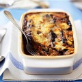 3 баклажана 250 г говяжьего фарша 2 луковицы 3 зуб. чеснока 400 г консервированных помидоров 2 ч.л. орегано 2 ч.л. базилика молотый белый перец соль по вкусу 3 ст.л. муки 3 ст.л. тертого сыра 3 стак. молока 1/2 ч.л. тертого мускатного ореха 2 ст.л. панировочных сухарей Баклажаны нарезать тонкими ломтиками, посолить, отложить в сторону. Фарш поджарить на сковороде без масла, снять с огня. В отдельной сковороде обжарить измельченные лук, чеснок, помидоры и пряности. Тушить на медленном огне примерно 10 минут, затем добавить в фарш. Для подливки смешать муку с молоком. Довести смесь до кипения и, постоянно помешивая, варить 5 минут. Затем добавить мускатный орех, белый перец и тертый сыр. Бумажным полотенцем высушить ломтики баклажана. Выложить их и смесь с фаршем слоями в огнеупорную посуду. Залить подливкой и посыпать панировочными сухарями. Запекать в духовке при 175С около 1 часа.