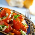 1 перец болгарский чеснок петрушка масло растительное соль лимонный сок Перец запечь в духовке в пакете до мягкости, очистить от кожицы, удалить сердцевину, нарезать полосками. Зубчик чеснока пропустить через пресс, смешать с растительным маслом, солью, измельченной петрушкой, сбрызнуть лимонным соком по вкусу. Смешать с приготовленным перцем, дать настояться 20-30 минут.
