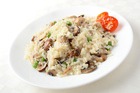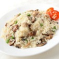 шампиньоны 600 г рис "Арборио" Мистраль 200-250 г бульон куриный 700 мл замороженный зеленый горошек – 100 г лук репчатый 1-2 шт. чеснок 4 зуб. масло сливочное 100 г масло оливковое 4 ст.л. сыр Пармезан 150 г свежая петрушка соль перец чёрный молотый – по вкусу Приготовить куриный бульон и поставить остужаться. Зеленый горошек, не размораживая, высыпать на сковородку, добавить сливочное или растительное масло, поджарить до готовности, поставить остужаться. В сковороде разогреть 3 ст.л. оливкового масла и добавить нарезанные грибы, жарить 4-5 минут. Шампиньоны могут быть заменены на другие съедобные грибы. Добавить мелко порубленный чеснок, соль, перец и жарить ещё 6-7 минут, затем снять с огня и остудить. В большой сковороде разогреть 80 г сливочного масла и 1-2 ст.л. оливкового масла, добавить мелко нарезанный лук и обжарить его до золотистого цвета. Добавить рис и размешать. Понемногу добавлять разогретый бульон следя, чтобы каждая порция бульона впитывалась рисом. Готовить, подливая бульон, до готовности риса, приблизительно 20-30 минут, добавить соль и перец по вкусу. Пармезан натереть на терке, петрушку нарезать. Когда рис будет готов, добавить в него приготовленные грибы, горошек, пармезан и петрушку. Перемешать, дать постоять под крышкой 3-5 минут, и подать горячим на стол. Другие гарниры >>>