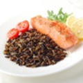 150 г риса "Акватика" Мистраль очищенные от чешуи стейки семги несколько столовых ложек растительного масла для украшения – зелень овощи лимон или лайм - по вкусу перец соль специи – по вкусу. Для маринада (при желании): 4-5 ст.л. оливкового масла, сок 1/2 лимона, несколько долек чеснока. Отварить рис. Для этого засыпьте смесь Акватика в кастрюлю с водой в соотношении 1:3 и доведите до кипения. Затем плотно закройте крышкой и варите на медленном огне 55-60 минут, пока рис не впитает в себя всю воду. Снимите с огня и оставьте на 5-10 минут. Для сохранения полезных веществ советуем не промывать рис после варки. Приготовить маринад: чеснок давим при помощи пресса, добавляем оливковое масло и сок половины лимона. Добавить специи – по вкусу. В маринад кладутся стейки из семги, стейки в маринаде убираются для маринования в холодильник на два часа. Сковорода смазывается растительным маслом, хорошо разогревается. На сковороду выкладываются куски семги и обжариваются с двух сторон до готовности. Другие гарниры >>>