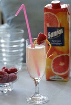 300 мл грейпфрутового сока Santal 1 бутылка сухого шампанского свежая малина для украшения грейпфрутовая кожура стружкой На дно бокала налить 75 мл грейпрутового сока, долить до верху шампанским. Украсить грейпфрутовой стружкой и ягодкой малины на шпажке. Немедленно подавать. Другие рецепты итальянской кухни >>>