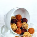 50 г сливочного масла (размягченного) 150 г черного шоколада 2 ст.л. рома или бренди 50 г шоколада 150 г сливок Parmalat жирностью 35% Для обсыпки: 2 ст. л. толченых несоленых орехов 1 ст. л. какао-порошка 0,5 ч.л. сливочного масла Шоколад наломать на небольшие кусочки, поместить в блендер и размолоть в муку. Для трюфелей следует покупать шоколад с высоким содержанием какао-бобов - не менее 75%. Сливки влить в сотейник, положить сливочное масло, добавить алкоголь. Поставить сотейник на водяную баню и, постоянно помешивая, довести смесь до кипения, сразу же снять с огня. Взбивая, тонкой струйкой влить сливочную смесь в шоколад; взбить до однородности. Перелить смесь в миску, накрыть пленкой и дать застыть.* Шоколадную смесь надо оставить в холодильнике на несколько часов или на ночь. Приготовить трюфели в обсыпке из какао порошка. Какао просеять на плоское блюдо. Чайную ложку смеси для трюфелей быстро скатать в шарик, обвалять в какао. Готовые трюфели выкладывать на бумажные формочки или плоское блюдо, сразу же убирать в холодильник. Приготовить трюфели в шоколаде. Аналогичным образом скатать шарики величиной с небольшой грецкий орех. Поставить в холодильник. Шоколад наломать на небольшие кусочки и растопить вместе со сливочным маслом на водяной бане. Охлажденные шарики опускать по одному в горячий шоколад, сразу вынимать и выкладывать на плоское блюдо. Убрать в холодильник. Приготовить трюфели в ореховой обсыпке. Шарики из трюфельной смеси обвалять в орехах и поставить в холодильник. Получается 20-24 шарика. Другие рецепты итальянской кухни >>>