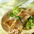 150 г муки 1/2 ч.л. соли 200 мл молока 100 мл сливок 2 яйца 60 г сливочного масла 300 г сыра фета 4 стручка маринованного зеленого пеперони 300 мл йогурта 1 ст.л. рубленого укропа лимонный сок Смешать муку, соль, молоко, сливки и яйца. Подмешать 40 г сливочного масла. Оставить на 15 минут. Фету размять. Перец нарезать тонкими кольцами. Смешать с йогуртом и укропом. Посолить и поперчить. В оставшемся сливочном масле испечь блинчики. Готовые блинчики складывать на блюдо и держать в духовке, разогретой до 70 градусов. Выложить на блинчики начинку, свернуть в трубочки и украсить, по желанию, молотой паприкой, зеленью или соцветиями укропа.