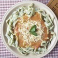 400 г широкой лапши 1 клубень фенхеля По 2 ст.л. оливкового масла, лимонного сока и кедровых орешков Соль 1 луковица 1 пучек базелика 100 г сыра Перец 250 мл молока 200 г моркови 1 зубчик чеснока 1 ст.л. сливочного масла Лапшу отварить в подсоленой воде. Фенхель и морковь очистить и мелко нарезать, тушить 10 минут в оливковом масле, добавить выжатый через пресс чеснок, соль, перец, 1 ч.л. лимонного сока. Лук порубить и пассеровать в сливочном масле, добавить лимонный сок, молоко и довести до кипения. Сыр раскрошить и расплавить в горячем соусе, посолить и поперчить. Кедровые орешки обжарить без жира, лапшу перемешать с овощами, соусом, орешками и листочками базелика.