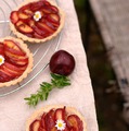 Духовку нагреть до 200 град. и печь тарты около 10-15 минут до полуготовности. В это время подготовить начинку. Сливы нарезать. Выложить сливы на полуготовые тарты, посыпать сахаром по вкусу. Продолжить выпечку при 200 град. еще минут 20-25 или до готовности, тарты должны слегка зазолотиться. Остудить и подавать.