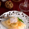 Теперь начинаем оформлять десерт. Аккуратно ножом срезаем верхушку слоек - квадратик стороной в 3-4 см. Аккуратно, стараясь не повредить дно слоек. Ложкой начинить слойку бананами, влить соус. А сверху на банановую начинку аккуратно положить срезанную верхушку-крышечку.Посыпать сахарной пудрой и сразу же подавать.