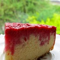 Пока пирог выпекается, займемся малиной. Смешать малину с сахарной пудрой, поставить на плиту. Листовой желатин размягчить в холодной воде и добавить в горячую малину. Не кипятить! Сразу снимаем с плиты и остужаем при комнатной температуре. Если нет листового желатина, используйте обычный, приготовив его по инструкции на упаковке. Корж готов, вынимаем его из формы, слегка остужаем и, перевернув вверх дном, снова укладываем в форму (а можно и не переворачивать :)