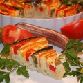 Рис обжарить в 2 ст. л. растительного масла до стеклянности. Залить бульоном и готовить на медленном огне до полного испарения жидкости. Рис получится полуготовый. Вы можете просто отварить ваш любимый рис до полуготовности. Смешать вместе фарш, остывший рис, 1 яйцо, петрушку, натертый лук, сыр и фета, соль и перец. Поместить смесь в форму 30 см в диаметре, обильно смазанную маслом. Нарезать тонкими лентами морковь и бланшировать ее 1-2 минуты. Кабачок и баклажан. Перец нарезать полосками. Выложить овощи, вдавливая их в фарш по всей поверхности запеканки радужными кольцами. Смешать растительное масло (2 ст. л.), чеснок и немного соли. И смазать все овощи. Сливки взбить с яйцом и с помощью ложечки влить смесь между всех овощей. Запекать в прогретой до 180"С духовке 30-40 минут. Ориентируйтесь на вашу духовку. Дать запеканке остыть и нарезать на порции. Вкусно и в горячем, и в теплом виде.