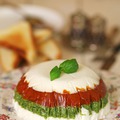 Форму выстилаем пищевой пленкой, наливаем творожно-йогуртовый слой, убираем на несколько минут в морозилку. Когда масса схватится, выливаем томаты - и снова в морозилку. Следом наливаем песто (простите, тут я забыла щелкнуть кадр...), снова в морозилку, заканчиваем вторым слоем творожно-йогуртовой массы и убираем в холодильник на пару часов или на ночь.