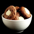 При появлении трещинок на поверхности печенья его нужно вынимать из духовки, оно будет слегка мягкое, но это временно! После остывания печенье затвердеет, а внутри останется пышненьким. После духовки, желательно, ещё раз нажать пальчиком на углубления. Половины плитки шоколада будет достаточно на такое количество ингредиентов, шоколад поломать и растопить любым удобным для вас способом (я делаю это в микроволновке), затем жидкий шоколад залить в ложбинки на печенье и дать полностью застыть. Вкусное, шоколадное и довольно симпатичное печенье получится в итоге. Хрустящее снаружи и воздушное внутри.