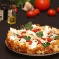 Сверху все засыпать сыром. Включить режим "выпечка" на 30 минут. После окончания программы открыть крышку, немного охладить запеканку, выложить на пароварку, затем на блюдо. Можно подавать как в горячем виде, так и в холодном. При подаче выложить сверху запеканки кусочки моцареллы и вяленые томаты, зелень.