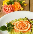 1. Яблоко очистить от кожуры, удалить сердцевину, нарезать тонкими пластинками и сбрызнуть лимонным соком.