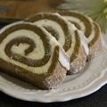Остывший рулет раскручиваем и смазываем приготовленной начинкой. Затем скатываем обратно в рулет.