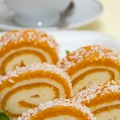 Застывшую основу с кремом аккуратно и плотно свернуть рулетом, завернуть сверху пищевой пленкой и отправить в холодильник до застывания рулета минут на 30-40. Застывший рулет покатать в кокосовой стружке, нарезать на порционные кусочки и подавать к столу.