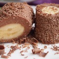 А теперь первый вариант подачи десерта. Шоколадно-творожную массу распределить на пищевой пленке. Сверху положить банан. Сформировать “колбаску”. Убрать в холодильник минут на 20 для застывания.