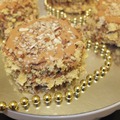 Т. к. пирожные я делала круглые, у меня остались обрезки, которые я измельчила и обсыпала ими боковинки. Сверху посыпала толченными орешками.