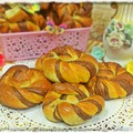 Тесто разрезать на полоски толщиной 4 см, затем каждую полоску разрезать пополам. Каждую полоску скрутить спиралью и завернуть улиткой или клубок.