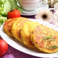 Злаковые хлопья поместить в блендер и измельчить. Добавить к творожно-картофельной массе измельченные хлопья и разрыхлитель. Хорошо перемешать. Сформировать из полученной массы оладьи (я воспользовалась кулинарным кольцом) и выложить их на сковородку, смазанную оливковым маслом. Обжарить оладьи с двух сторон на среднем огне, минут по 7. Выложить на блюдо.