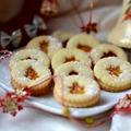 Когда печенье остынет, начинается самое интересное! Зовите детей и обязательно мужа! Помощь будет нужна. Будем печенье собирать с помощью варенья. Желательно ярких цветов! У меня варенье из красной смородины и желтое апельсиновое. Чайной ложкой накладываем варенье на целый кружок, накрываем печенюшкой с отверстием. Аккуратно. Не придавливать сильно! Печенье очень нежное.