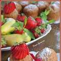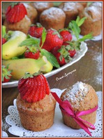 Белки взбить до густой пены. Лопаточкой смешать сухие и мокрые составляющие. (Я забыла сфотографировать этот шаг)Тесто разложить по формочкам и выпекать при 180 градусах 25-30 минут. Немного остудить, украсить сахарной пудрой, свежей клубникой и подавать.