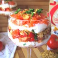 Для верринов я использовала фужеры объёмом 130 мл. Можно использовать любые стеклянные бокалы, стаканы, фужеры и даже стопочки. Два главных правила при приготовлении верринов-посуда не должна быть более 150 мл и слои должны быть контрастными по цвету и по вкусу. Сервируем закуску: на дно фужеров выкладываем овощную смесь, присыпаем тонким слоем пикантной гранолы, далее слой рикотты. Повторяем слои: овощи-гранола-рикотта. На верхний слой рикотты выкладываем сёмгу, украшаем небольшим количеством гранолы и петрушки.