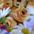 Из "бублика" делаем 8, складываем 8 пополам, выкладываем свернутую восьмерку на кружок с начинкой и убираем на смазанный противень.
