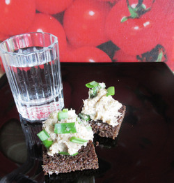 На маленьких квадратиках бородинского хлеба - просто очень вкусная антипохмельная бомба!