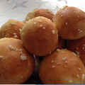 Делим тесто на небольшие кусочки (20-22 штуки), формируем из них шарики и выкладываем на противень. Накрываем полотенцем и убираем в теплое место на полчаса. В это время разогреваем духовку до 180 градусов. Смазываем пампушки желтком и выпекаем до румяного золотистого цвета около 30 минут.