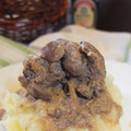 Печень очищаем, промываем. Лук, нарезанный полукольцами, обжариваем до золотистого цвета. К луку добавляем печень, обжариваем 5-7 минут. Добавляем соль, перец. Вливаем горчичный соус, убавляем огонь и тушим 15-20 минут до готовности. Подаем с картофельным пюре, обильно поливаем соусом.
