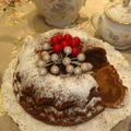 Кекс при выпечке сильно поднимется, но при выемке из духовки осядет. Дать остыть в форме затем вынуть. Кекс посыпать сахарной пудрой (можно украсить глазурью) и подавать к столу, он вкусен, как теплый, так и холодный.