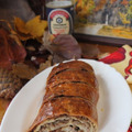Тонко раскатываем тесто. Можно растягивать руками, оно не рвется. Присыпаем панировочными сухарями. У меня не было сухарей, использовала темпуру. Выкладываем лук. Сверху слой фарша и сыр. Немного отступаем от края, чтобы начинка не вылезала. Сворачиваем плотным рулетом и отправляем в духовку, разогретую до 180 градусов, на 30-35 минут.