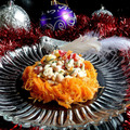 На тарелку выложить корейскую морковь в виде кольца и в центр выложить салат.