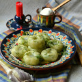 Мокрыми руками формируем небольшие шарики. Сверху слегка приплюснуть и сделать Углубление (дырочку), но не насквозь. Можно делать пальцем. Я использовала конец деревянной ложки.