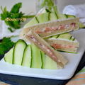 А теперь просто аккуратно обрезать полосочки огурцов, выравнивая их по краю сэндвичей. Завернуть в пищевую пленку и убрать в холодильник. Перед подачей разрезать каждый сэндвич по диагонали и подавать!