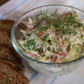Заправляем салат майонезом, даем настояться минут 10 и подаем к столу. Можно заправить йогуртом, смешанным с горчицей, тоже очень вкусно.