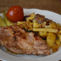 Жарим до поджаристой корочки на огне чуть ниже максимального на средней конфорке плиты. Переворачиваем. За 10-12 минут жареное мясо готово. Подавать с гарниром и овощами немедленно.