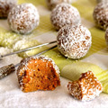 6. Влажными руками сформировать из получившейся смеси небольшие шарики (у меня получается примерно 20 штук), выложить их на проложенный пергаментом противень и убрать в холодильник на пару часов. Можно готовить заранее.