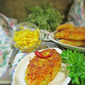 Кукурузу откинуть на дуршлаг. Из каждой части формовать на ладошке лепешку. В середину положить по 1-2 чайной ложке кукурузы. Формовать котлетки любой формы.